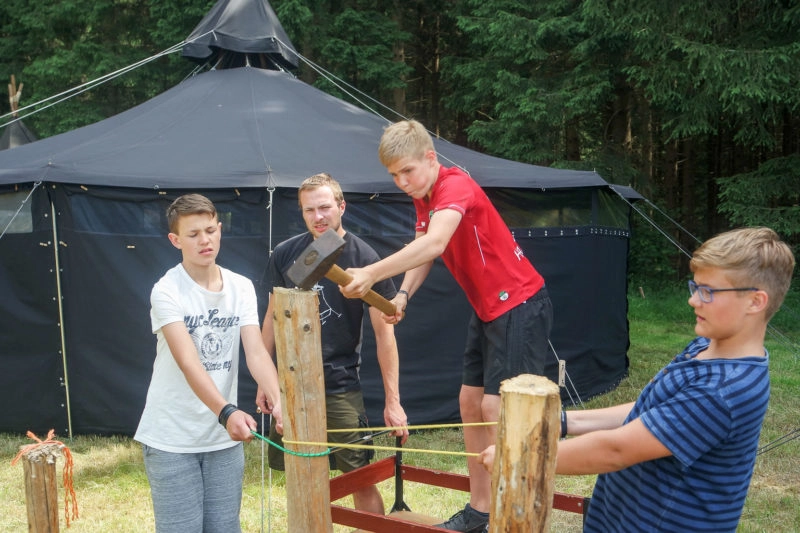 Unsere Sommerlager (SoLa) führt uns für knapp eine Woche raus in den Wald. Leben ohne Strom, eine Woche im Wald in Pfadfinderzelten kampieren und tolle Dinge mit knapp 50 Kindern und einem tollen ehrenamtlichen Mitarbeiterteam erleben, Nachtwache halten, Baden gehen, Bauen, Toben und noch vieles mehr. Das Sommerlager findet immer in einer der ersten Wochen der Sommerferien statt.